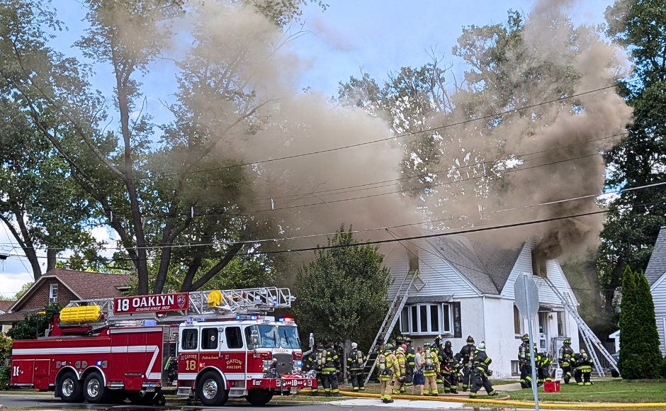 Firefighters battle a house fire at a home in Oaklyn. Credit: Matt Skoufalos.