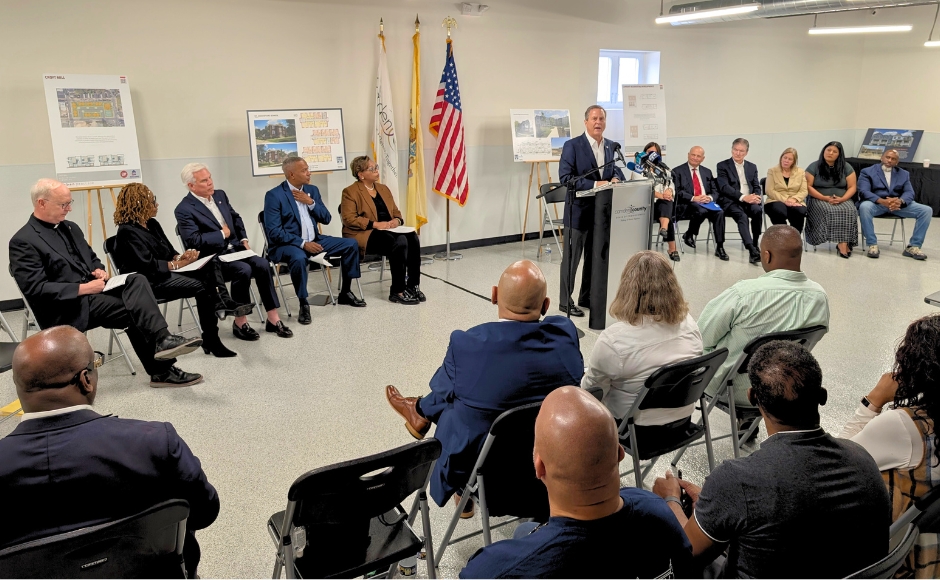 U.S. Congressman Donald Norcross speaks at the launch of the Camden Community Housing Collaborative. Credit: Matt Skoufalos.
