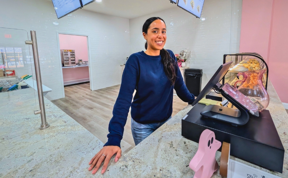 Yaslyn Lora at the counter of Lula’s Empanadas in Haddon Heights. Credit: Matt Skoufalos.
