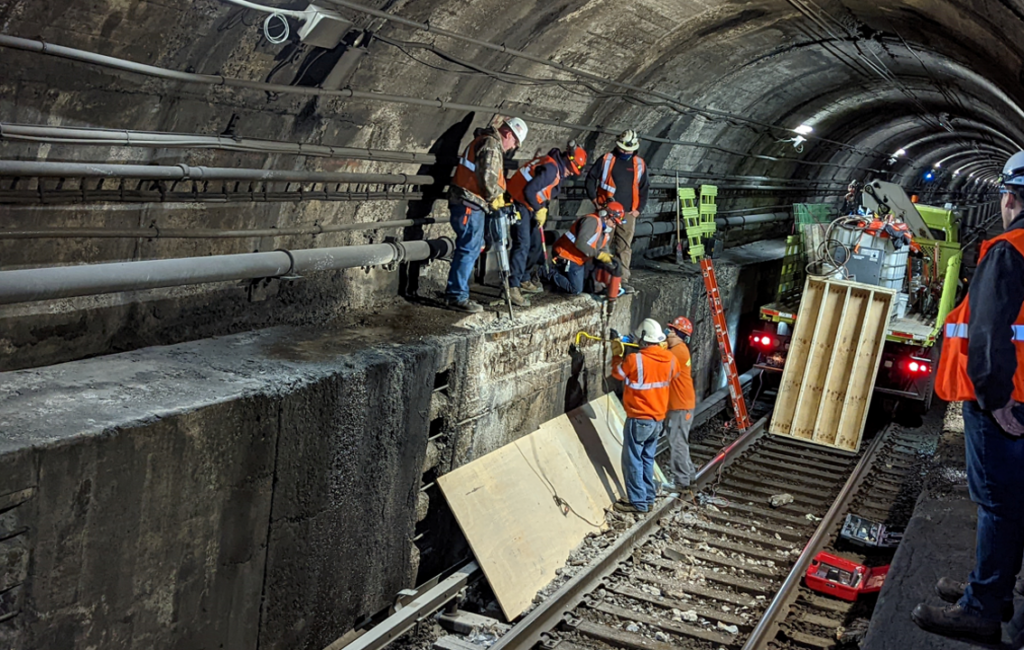 Workers inside one of the Hudson River rail tunnels. (Courtesy of Amtrak)