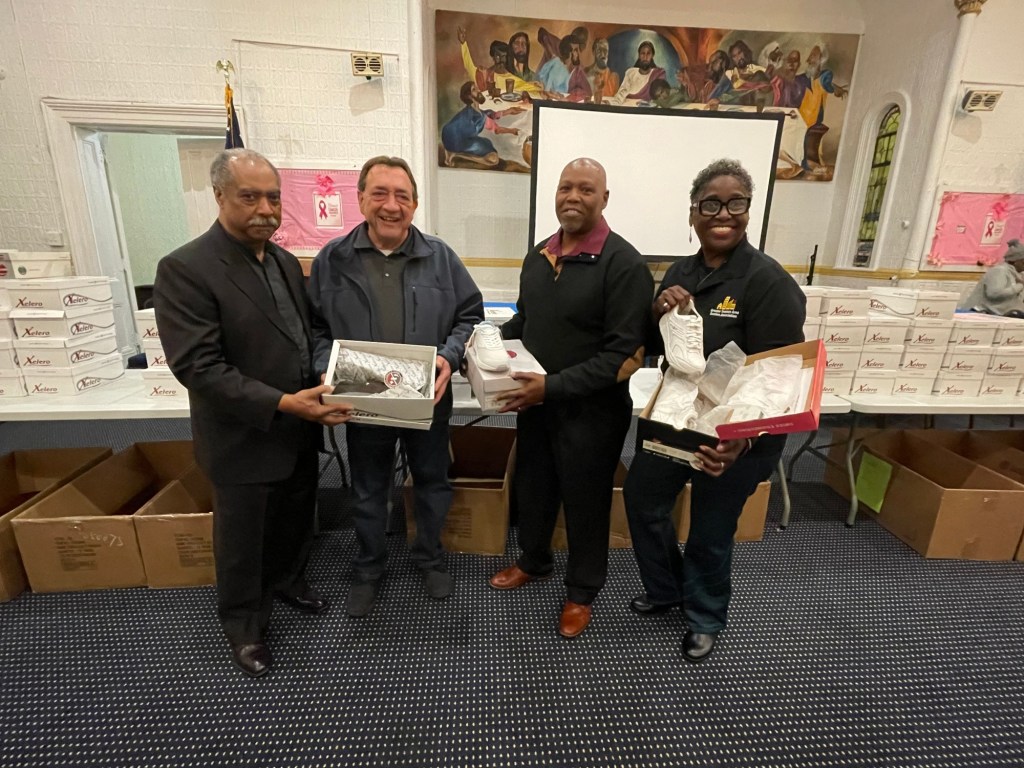 The Friendship Baptist Church conference room resembled a department store earlier this week. Going up! Women’s and men’s shoes located on the second floor where a windfall of footwear showed hundreds of shoe boxes.