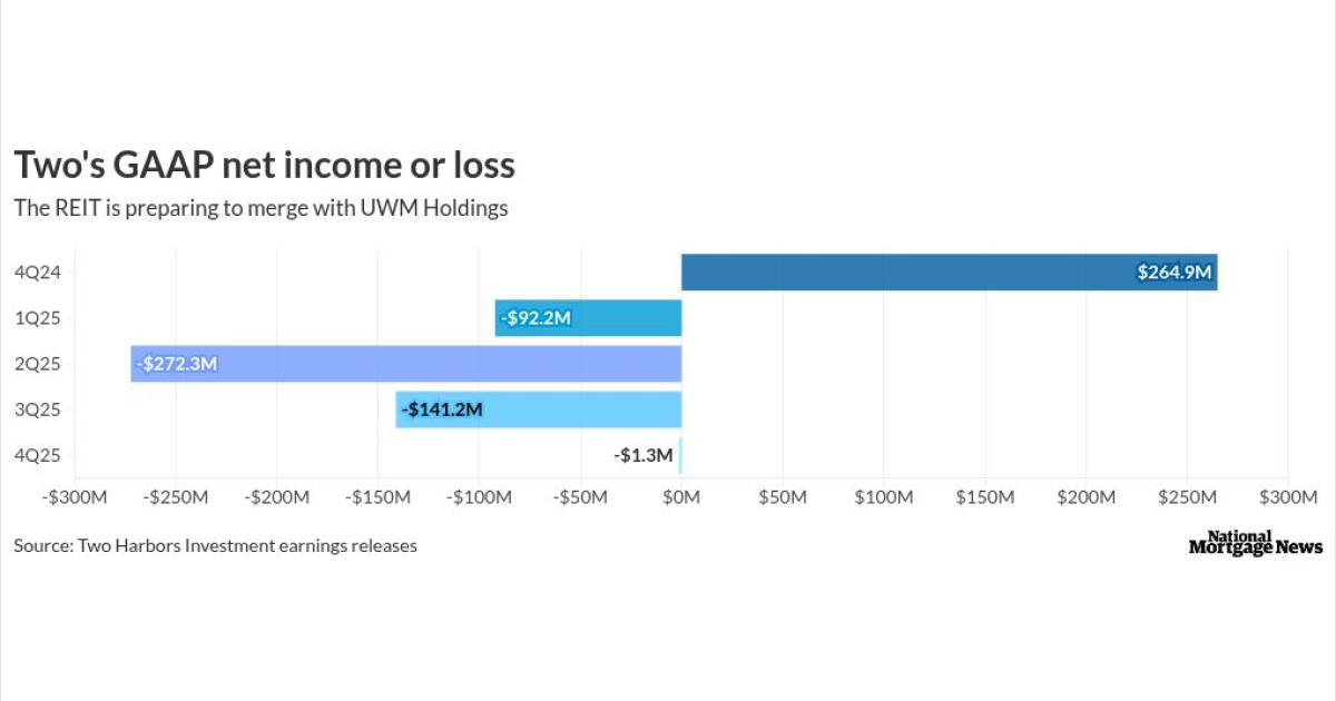 As Two Harbors Investment moves toward its sale to UWM Holdings, the mortgage REIT posted another quarterly GAAP loss and fell short of Wall Street’s earnings expectations, even as results improved sharply from a settlement-driven stumble earlier in the year.
