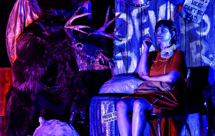 Jackie Fogel as Daisy Dirt with Dan Diana as The Jersey Devil, in “The Devil & Daisy Dirt.”